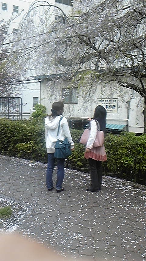 枝垂桜を愛でる二人です。