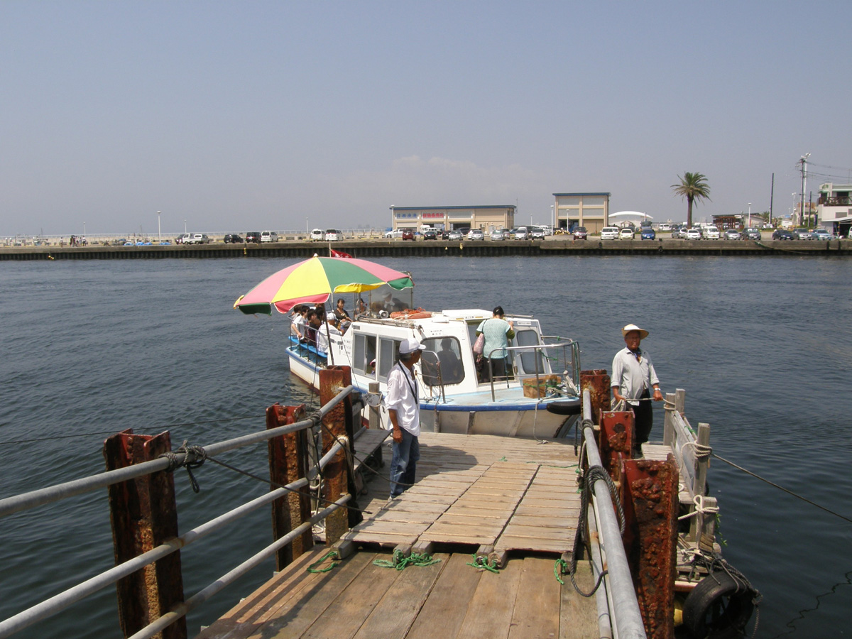 このちいさな船で、上陸します。もちろん徒歩でも
