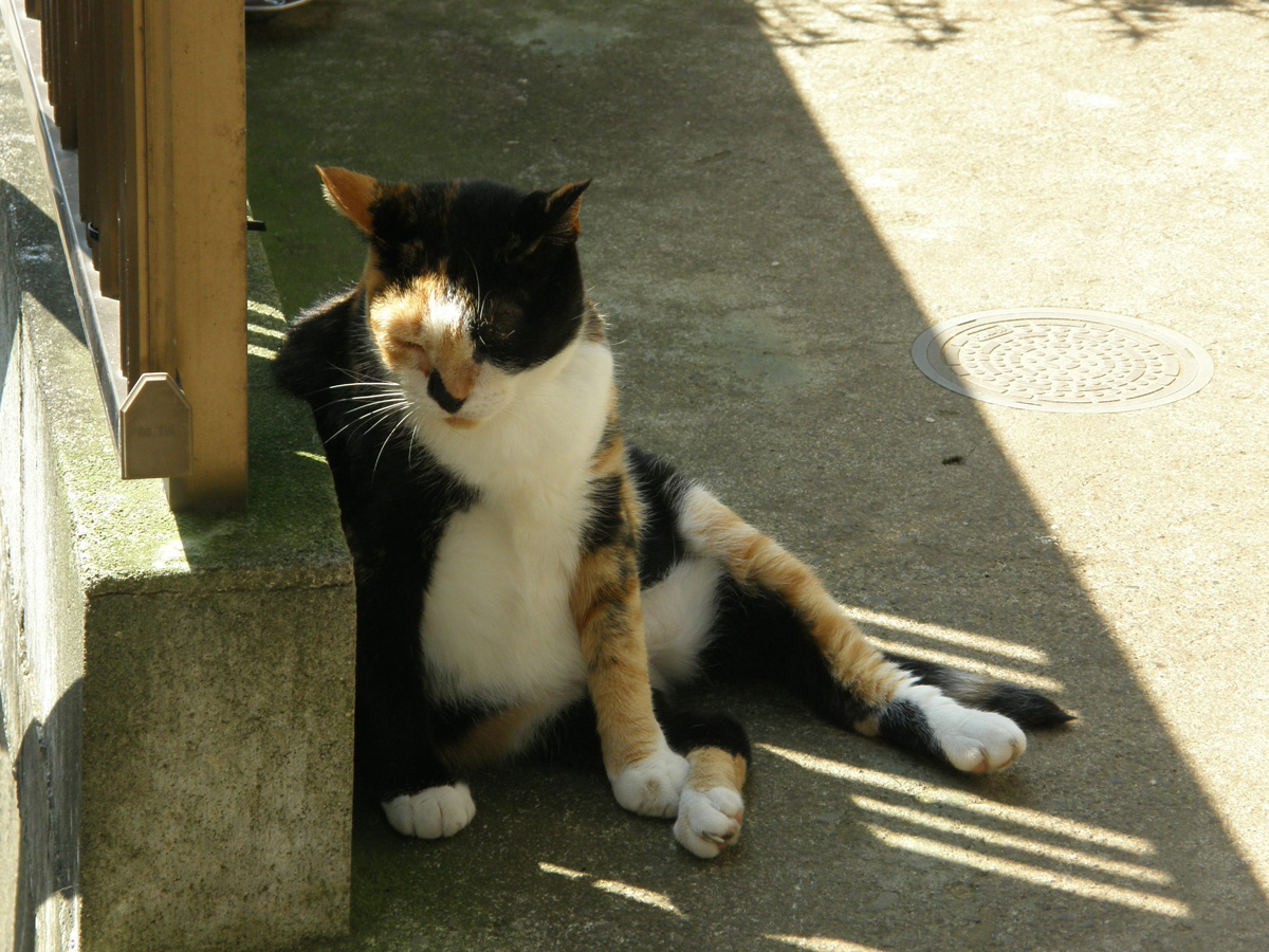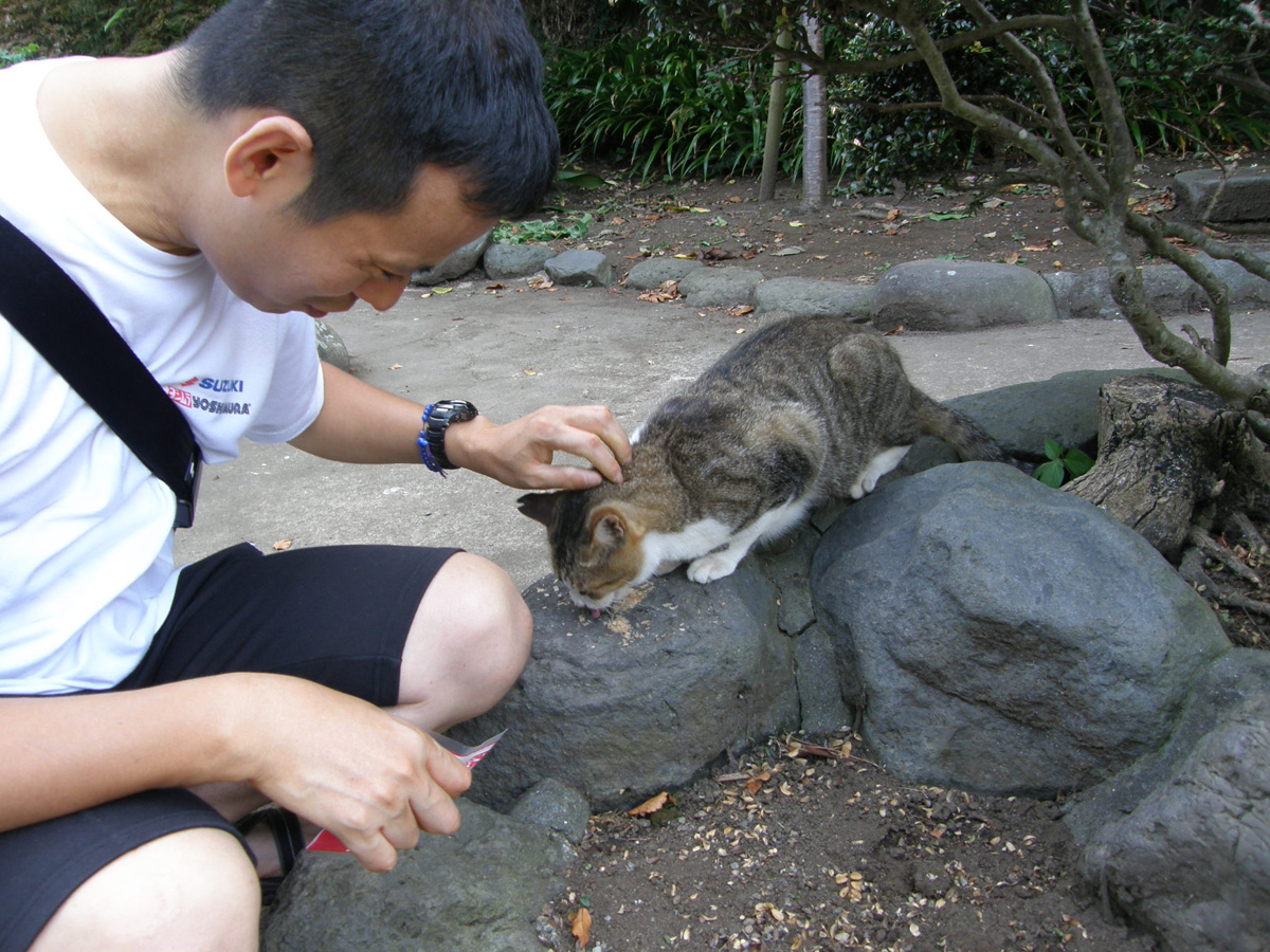 最後に仏像にお参りして帰り際にあったヌコにかつおぶしをいっぱい食べてもらいました。
