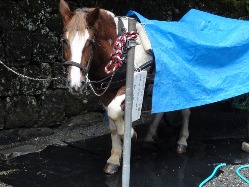 日光東照宮の入り口あたりです。ちなみに右の馬さんは足をあげておやつをおねだりする