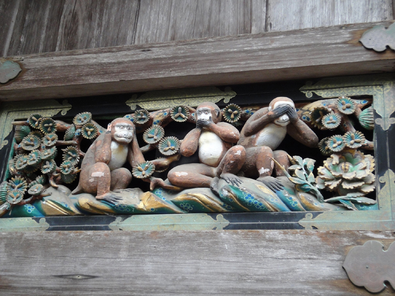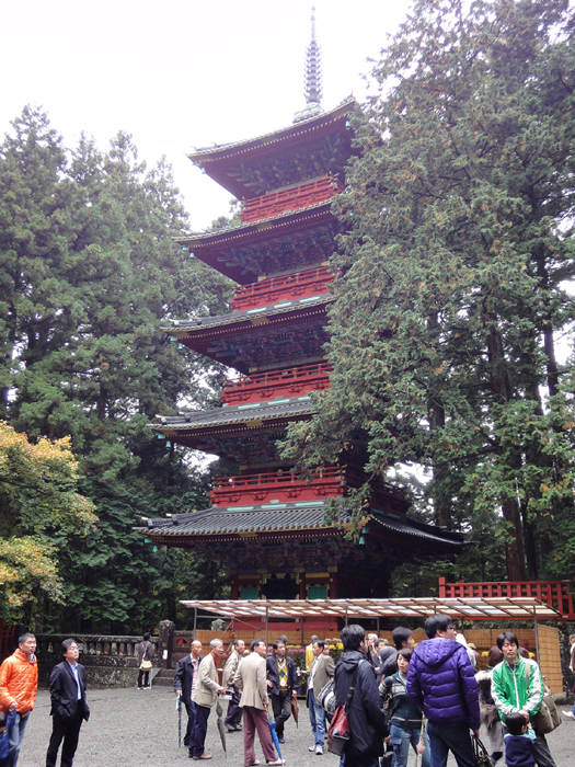 東照宮の入り口すぐ横にある五重塔としばらくあるいてからお出迎えする「見猿 言わ猿 聞か猿」