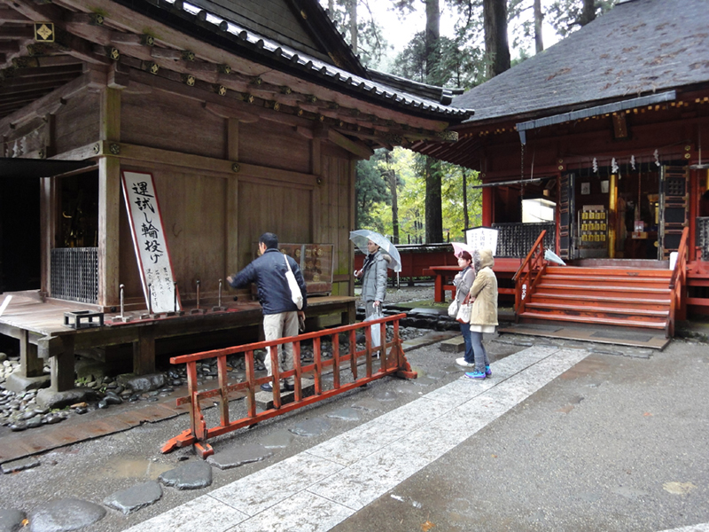 二荒山神社の境内の状況です。運試しの輪投げは見事に1つ入りました。これで勝てる!!