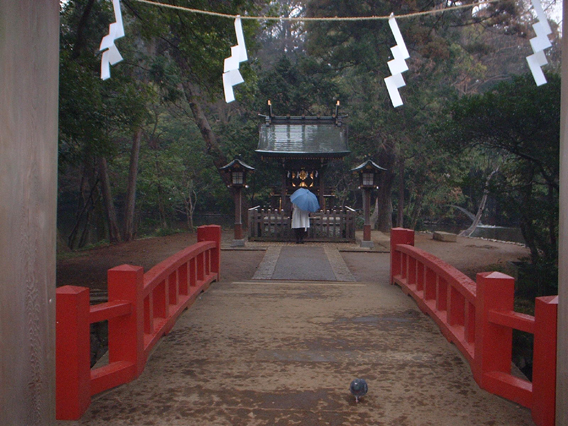 神社?みたいです。周りは池に
