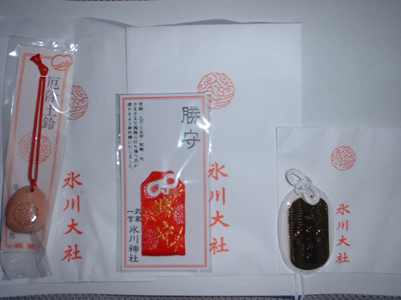 右側は、「小判型のお守り」で「商売繁盛」を祈願しての