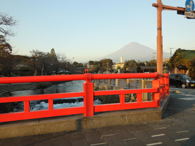 神社の近くを流れている小川の橋から撮影した富士山はとてもきれいでした。