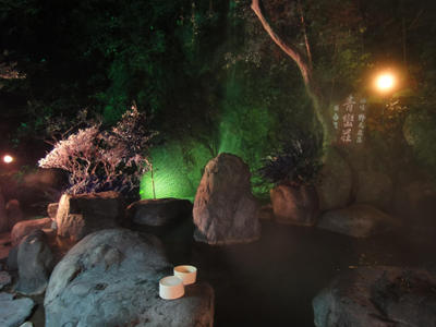 こちらが夜の露天風呂の風景です。なかなかの雰囲気です。