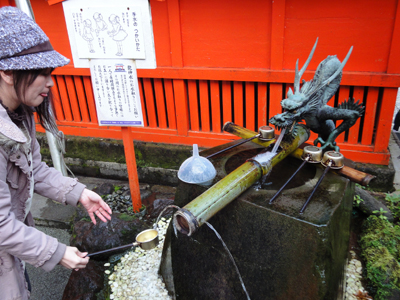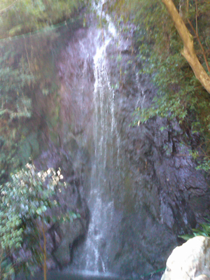 仏像が何体か祭られています。そして上から水が流れていて小さな滝のような