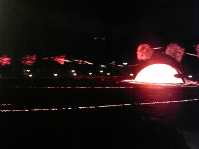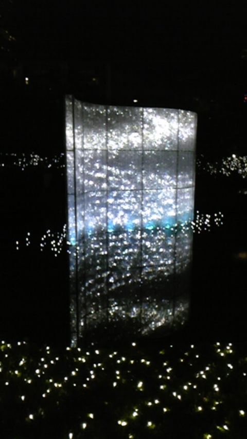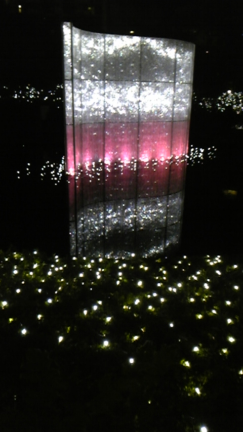 こちらは毛利庭園の池に設置されたイルミネーションです。音楽と一緒に明かりの