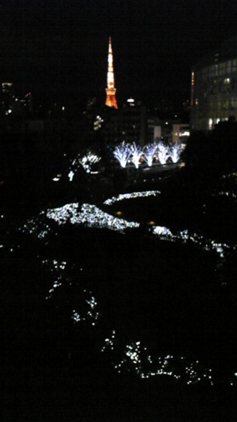 HILLS建物から下をみた、毛利庭園と東京タワーです。