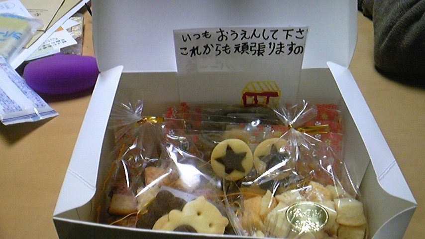 そのお礼に頂いた、手作りクッキーやゲームでの戦利品?です。