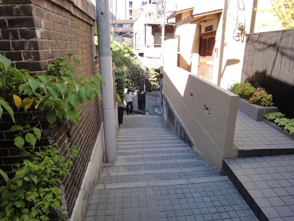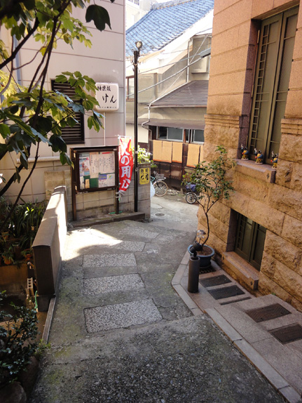 左の写真はなだらかですが高低差がかなりある坂です。この神楽坂では