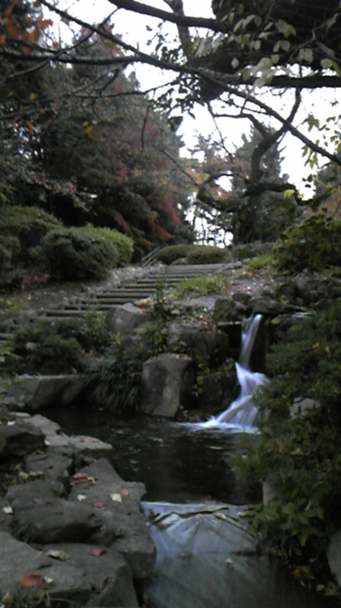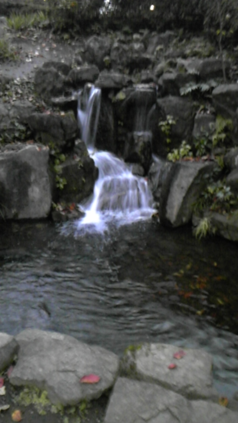 池の途中にある人口の滝なのですがよく出来ています。