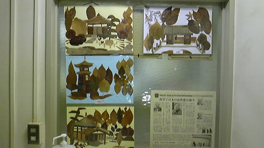 公園管理事務所にあった枯葉で描いた絵と