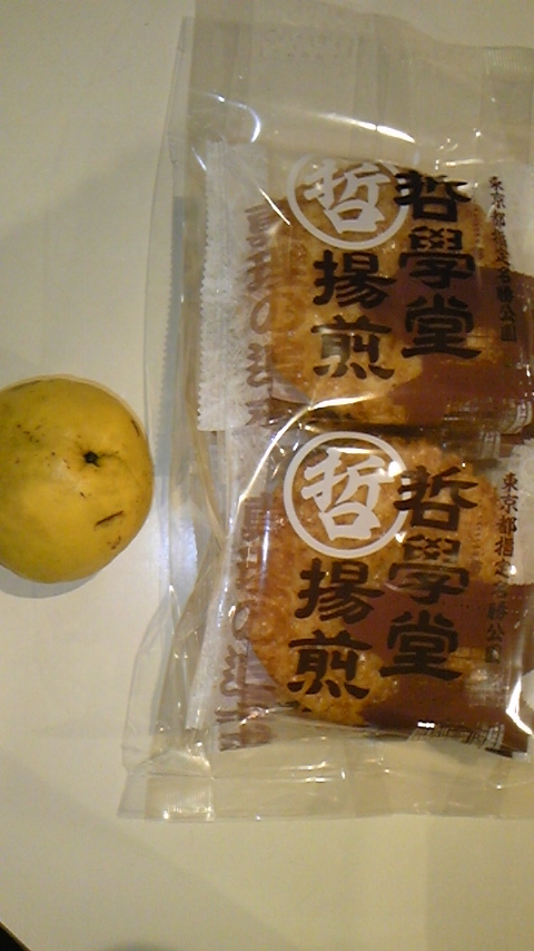 お土産の煎餅ともらったカリンの実です。