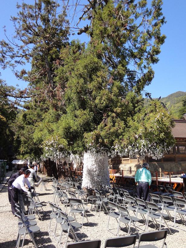 傍らの大木には、幹いっぱいにおみくじが結ばれ・・