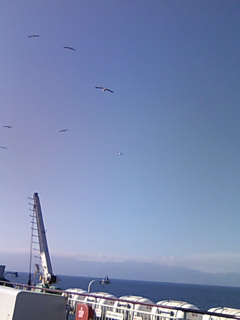 フェリーのデッキでは