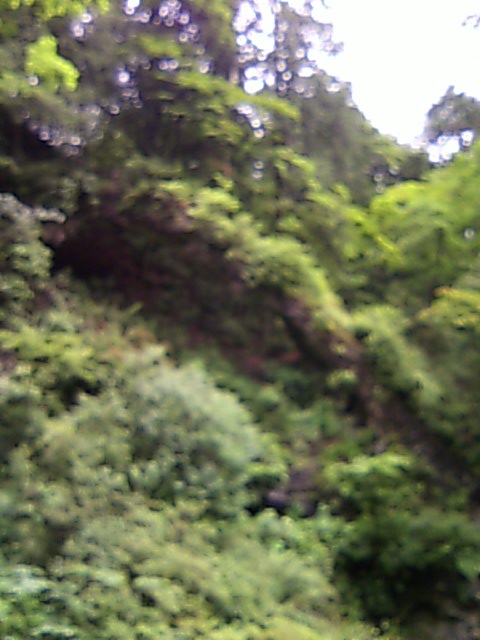 鳥居をくぐると空気が変わり、葉っぱもツヤツヤ、竜のように隆起した岩肌も・・