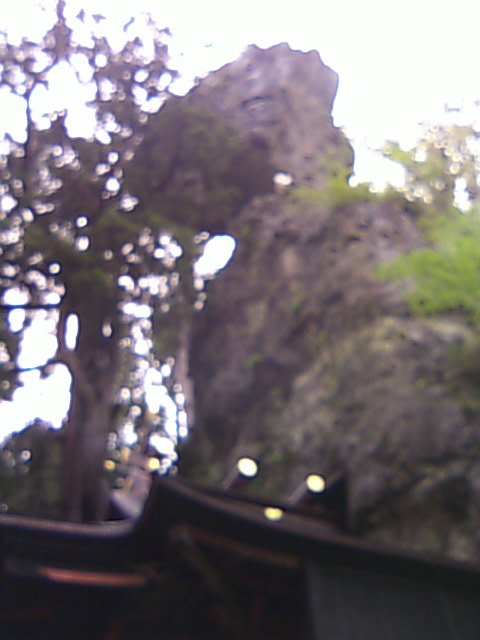 後ろの御姿岩の洞窟内に御内陣を祀り、拝殿が合体してます