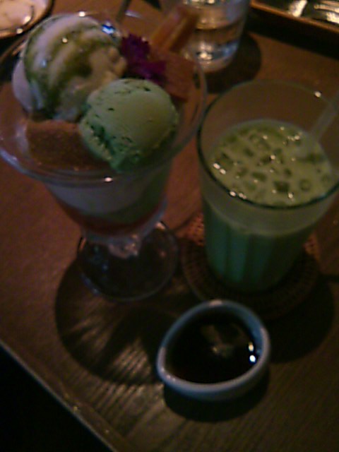 まるで和のオーケストラwのようなパフェと、豆乳抹茶ラテ(黒蜜付)!