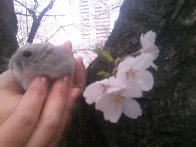昨年5月生まれのじゅぴ君も初桜~